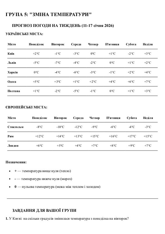 Картка Групи 5 Зміна Температури