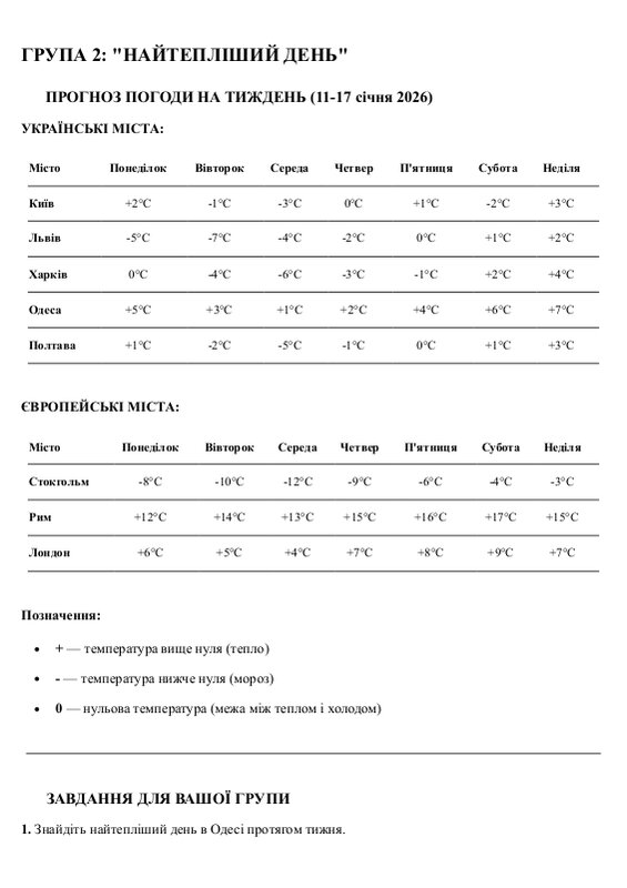 Картка Для Групи 1 Найхолодніший День