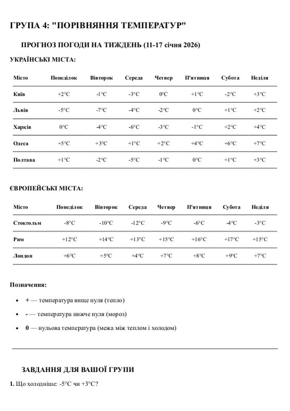 Рівень 2 (середній): Додатково до таблиці: запишіть 5 запитань про вашу таблицю погоди (як на уроці) та дайте на них відповіді.