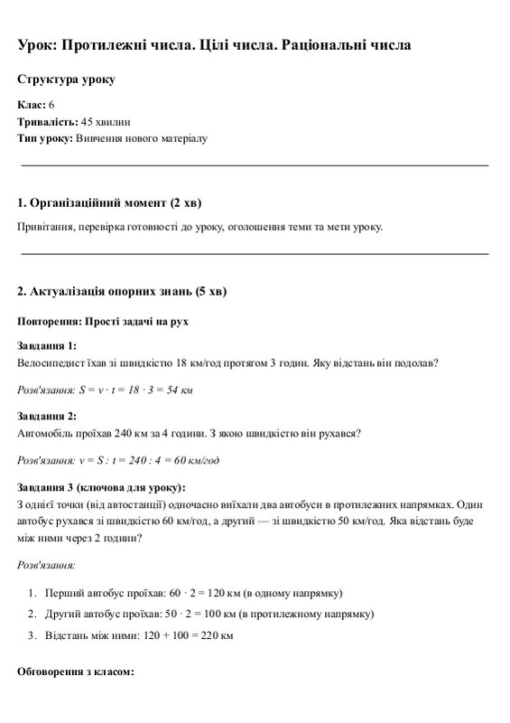 Урок: Протилежні числа. Цілі числа. Раціональні числа